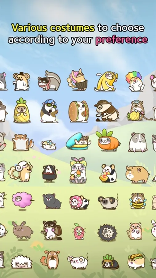 Collect a total of 15 animals. House mouse, panda mouse, squirrel, roborovskii, golden hamster, mouse, dwarf hamster, guinea pig, hedgehog, gerbil, flying squirrel, rabbit, Rat, Chinchilla and Capybara friends will join you.