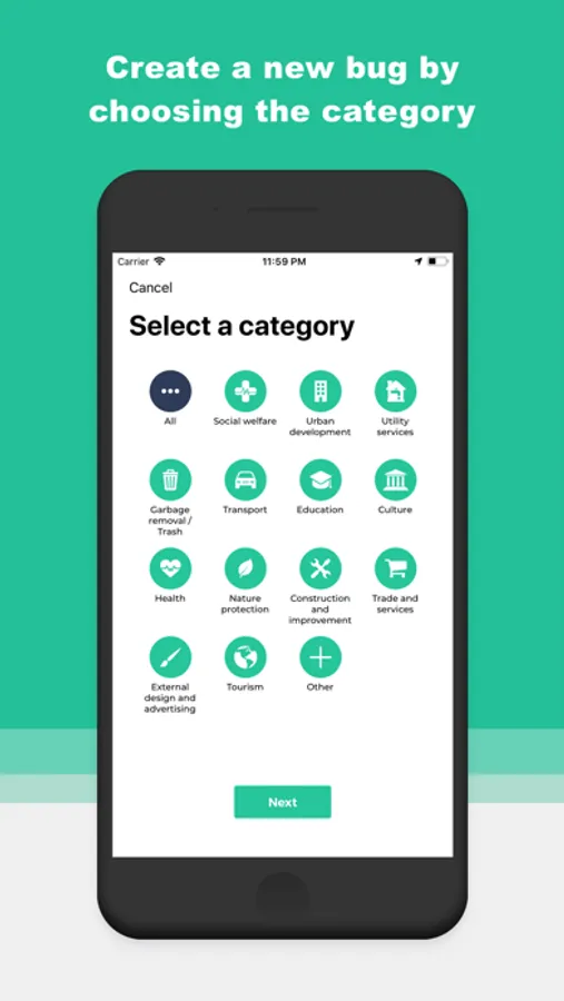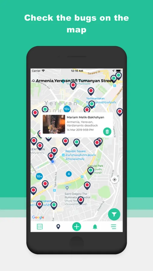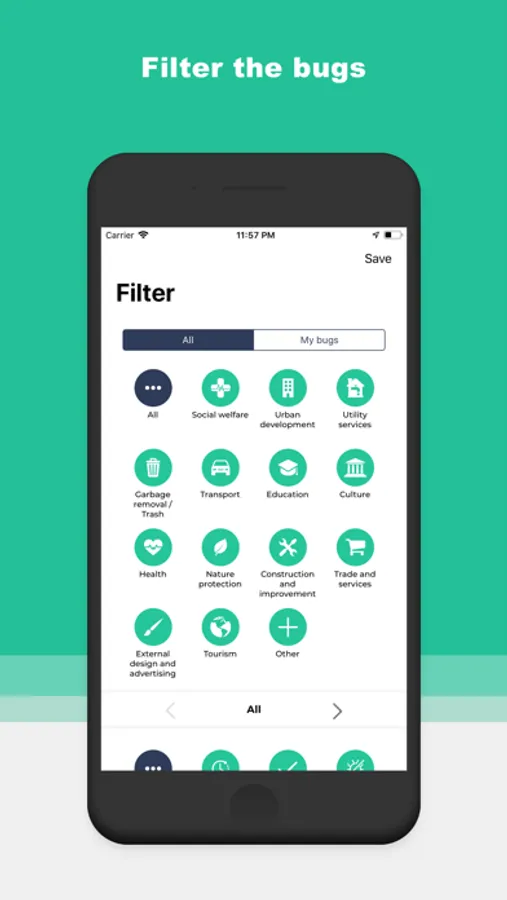 Have you noticed an issue? Go to Bugs.City or download the CityBugs app. Register (also via Facebook) and choose “Add BUG”. Capture the issue with your phone’s camera and submit 1-3 photos. You then choose a relevant category (health, waste management, etc.), mark the issue’s location on the map and add a description. The BUG is created. Now it is visible on the dynamic map and accessible to everyone.