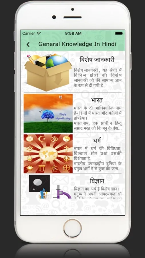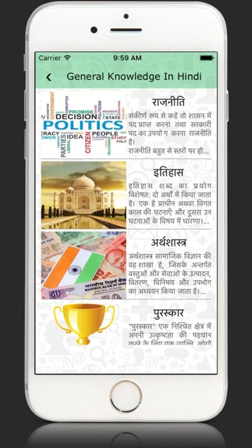 This app contains 9500+ General Knowledge Multiple Choice Questions in Hindi Language in Different Categories.
