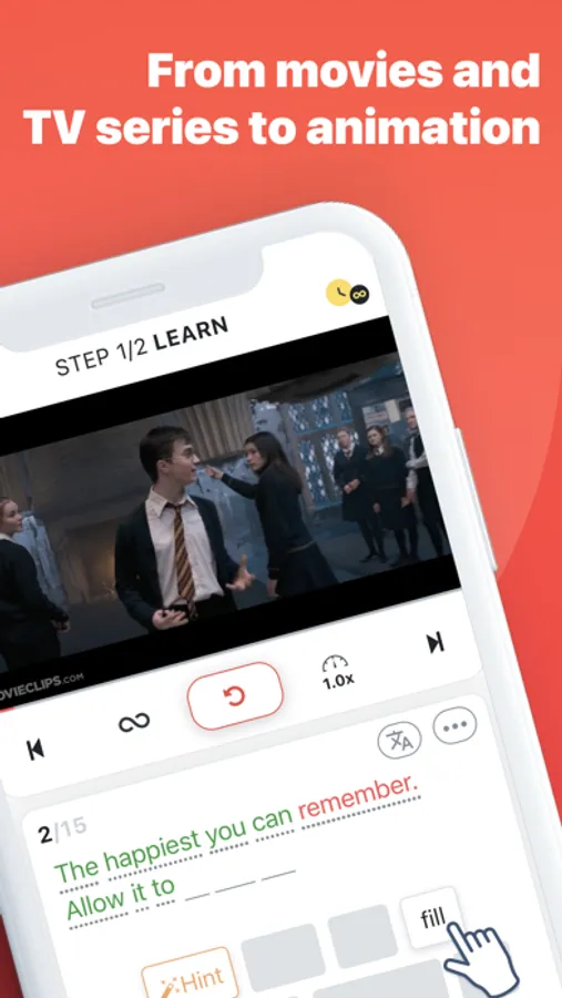You don't need to give up. Just have fun! Choose from TV shows, movies, animations, BBC News, celebrity interviews, and more. We've got everything ready for you to study. Learn English without even realizing it by watching your favorite videos. Is a video you want to study unavailable? Request it to the RedKiwi Team! (Caution! You might stay up all night studying)