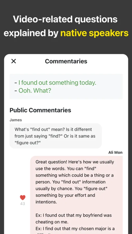 'What's the difference of everyone and everybody?' Nobody in school teaches you about tricky expressions or how natives speak English. The native speaker teachers in the RedKiwi Team are here to help. Their commentary will help you learn English used in 'real-life'! It's the cheat code for RedKiwi users who have questions while studying.