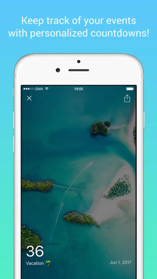 Personalize your countdowns with awesome emojis and your own background image. The app has a gallery with amazing, high resolution stock images you can use as well.