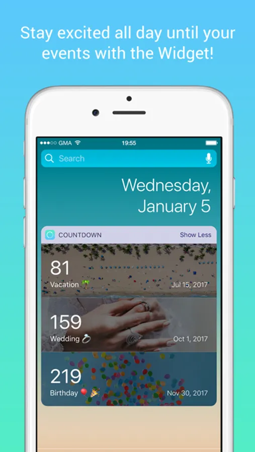 Stay excited all day by seeing your countdowns in the Today section as a widget! (Premium feature)