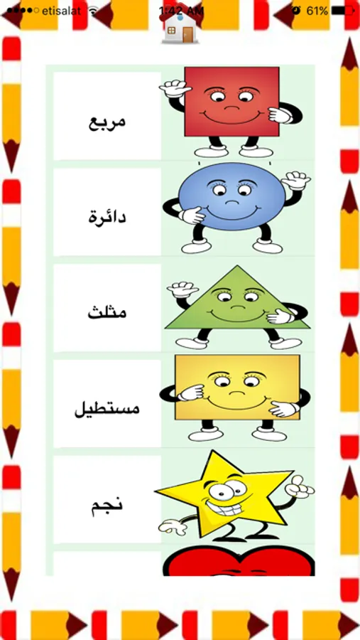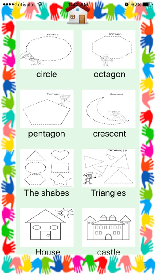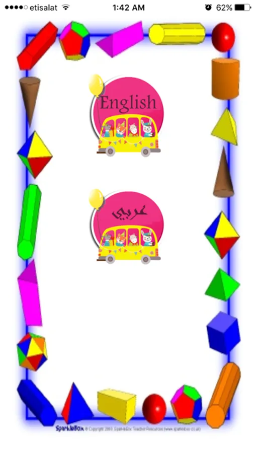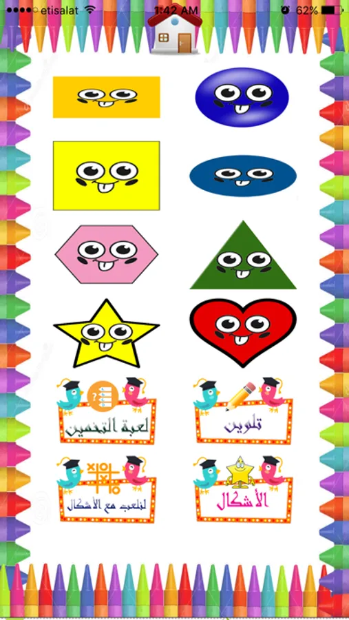 The app learning the english and Arabic shapes with the examples and quiz game about the right shapes and tic tac toe with shapes.