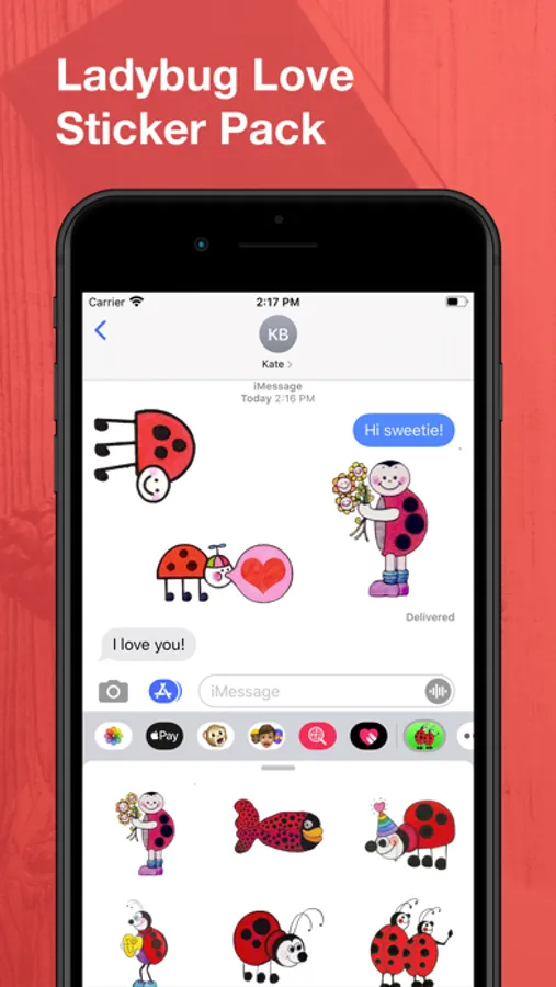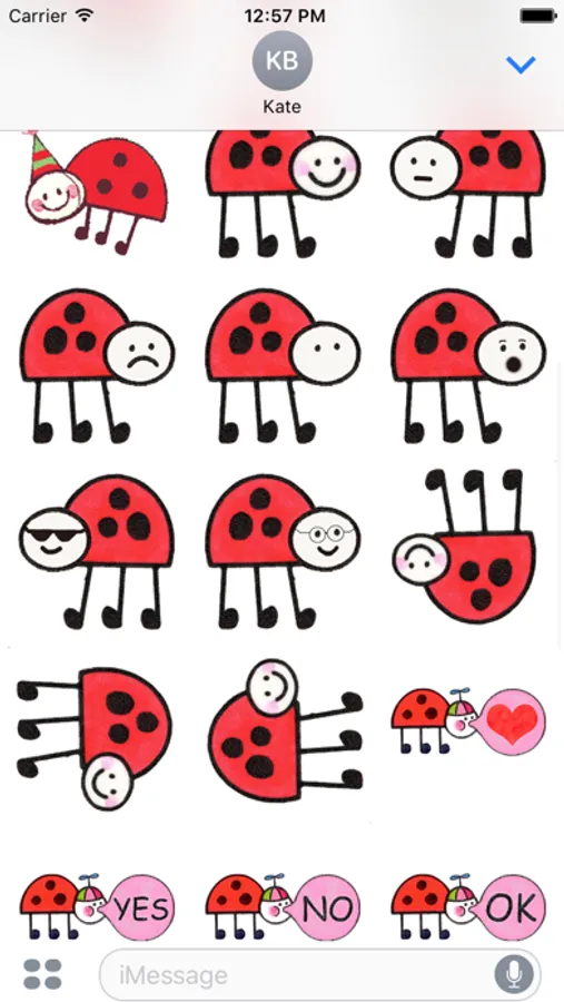 Simply tap to send Ladybugs in a message, adjust their size, or peel and place them on top of bubbles, other stickers, and your photos.