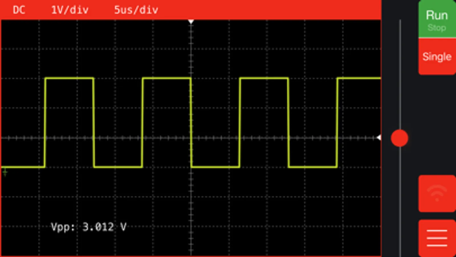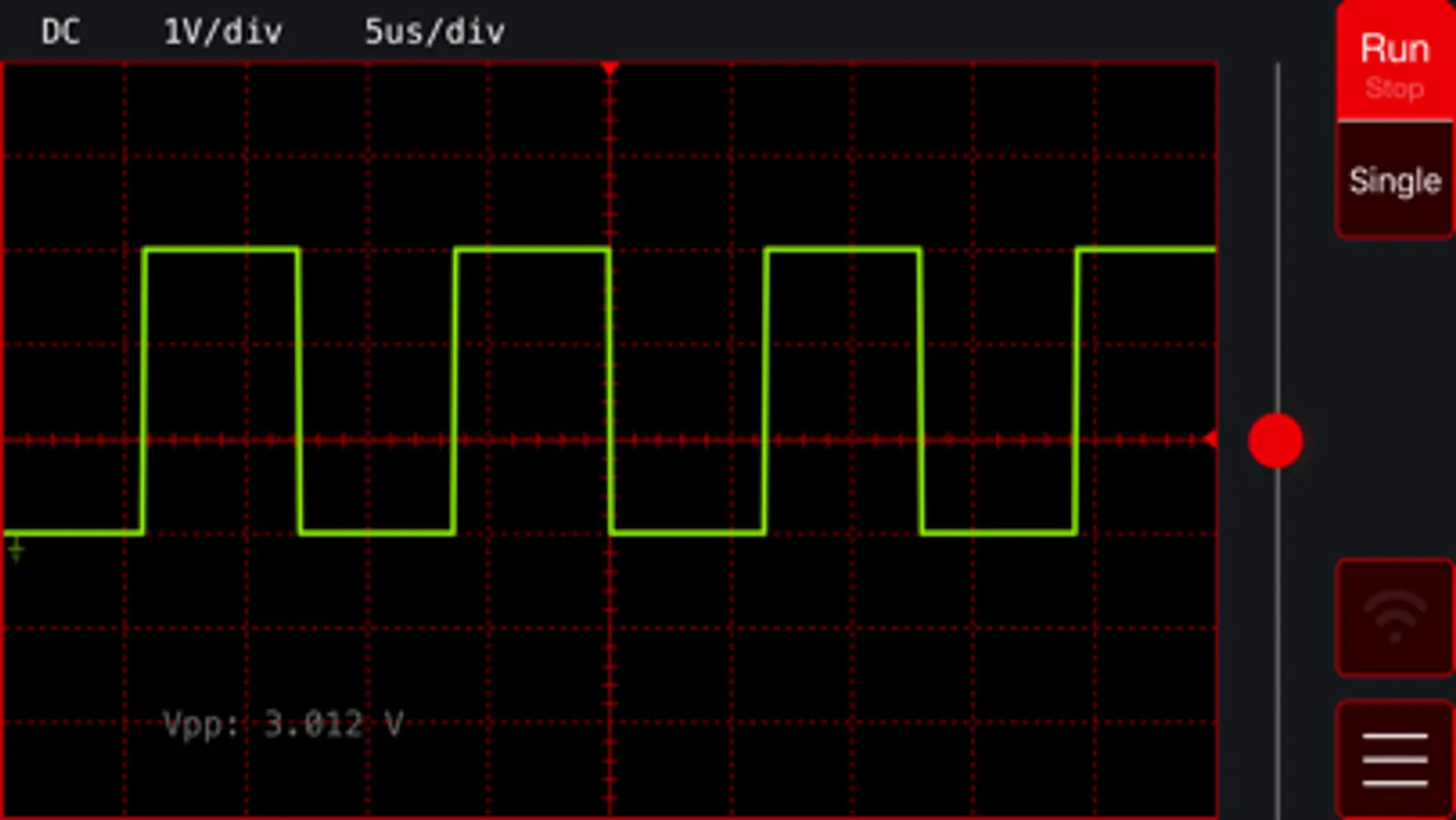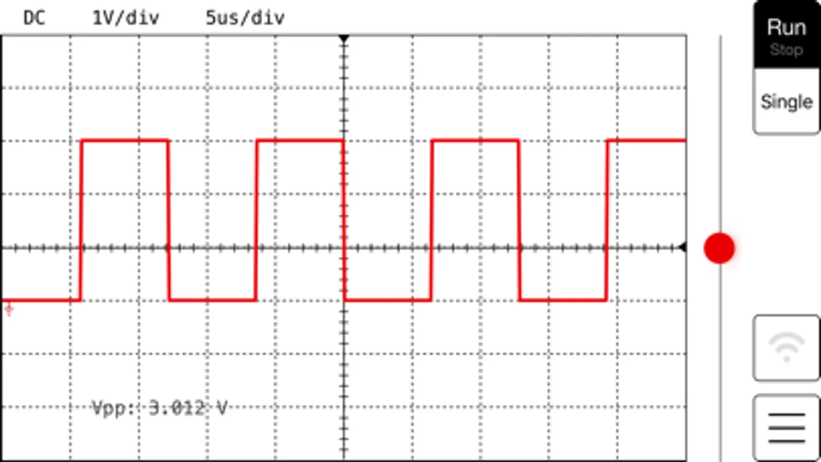 The Aeroscope App allows you to wirelessly connect to any Aeroscope oscilloscope probe over Bluetooth LE. Once connected, you can start and stop acquisition, change horizontal and vertical resolution, and plot acquired data.