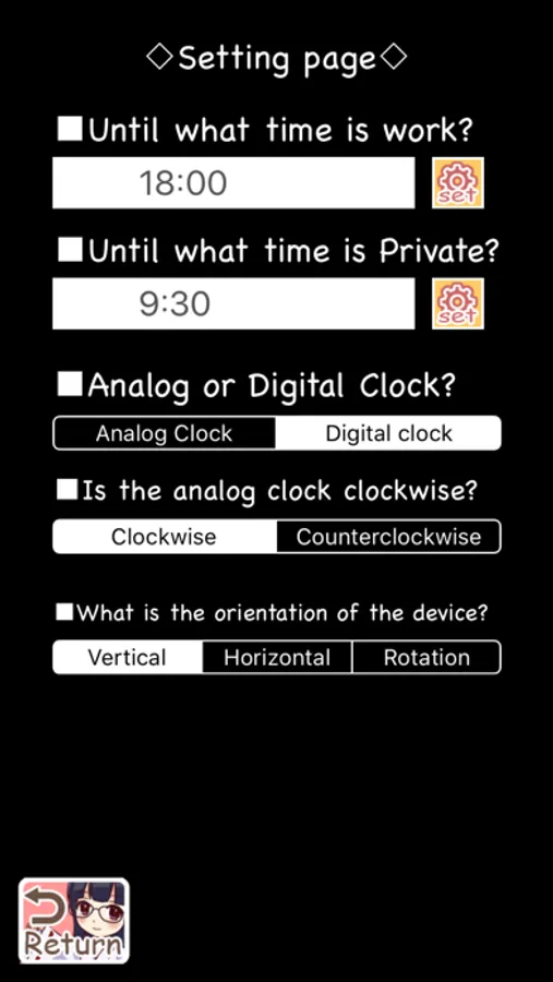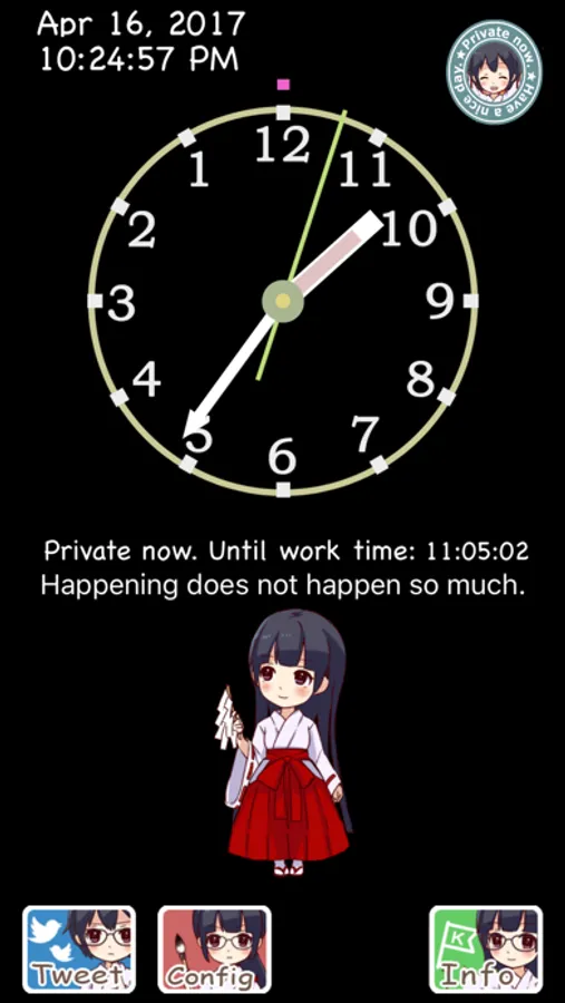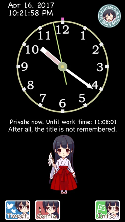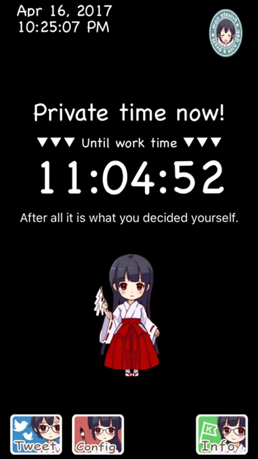 This App the day into private and work, and displays which time zone it is now and how many minutes it will take to the next time zone.
