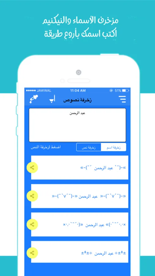 واجهة خاصة بزخرفة الأسماء والنك نيم