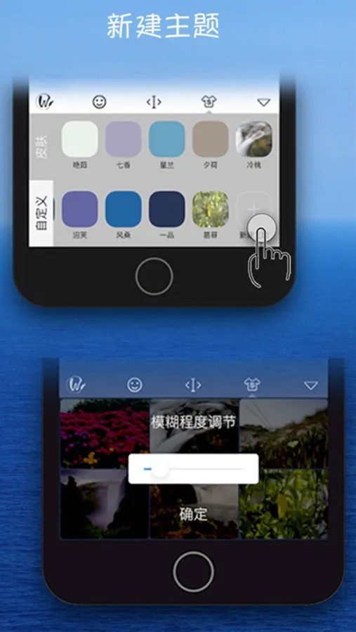 万能输入法可以任意从相册选择一张图片调整模糊程度作为键盘皮肤;