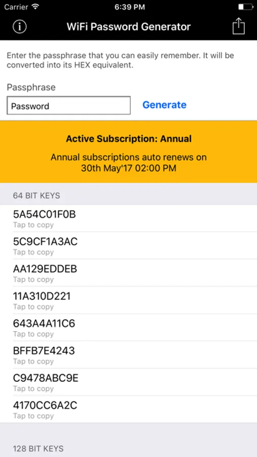 All you need to do is enter a simple passphrase that you can easily remember. The app will automatically generate secure WEP keys for your Wi-Fi router.