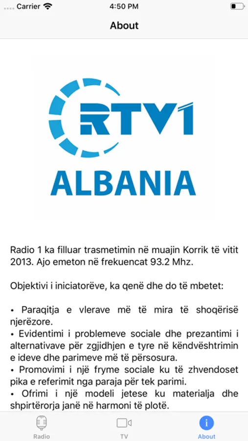 Aplikacion mobil per iPhone dhe iPad permes te cilit mund ta ndiqni live kanalin televiziv RTV1 si dhe te degjoni Radio 1.