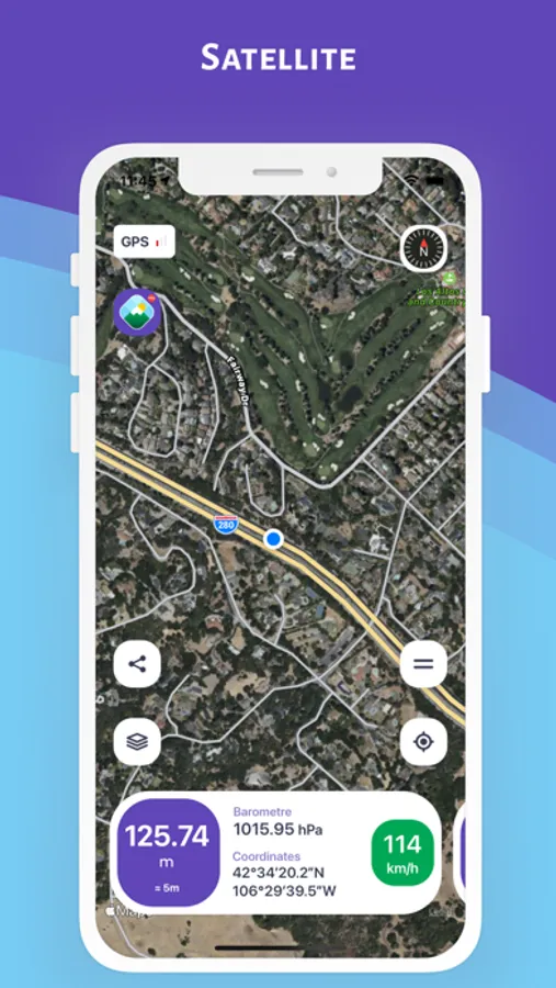On the map when traveling in a vehicle (car, bike, etc.), hiking or climbing, you can instantly track your location and the change in information