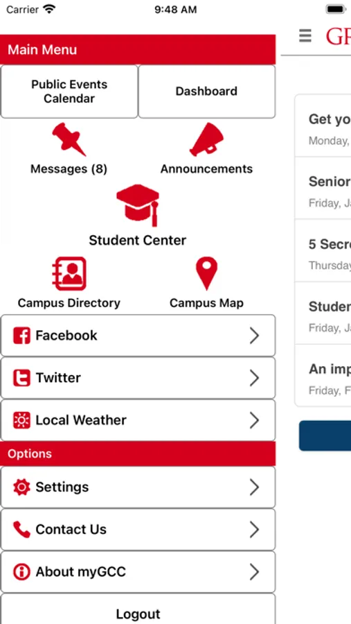 - View campus announcements and messages