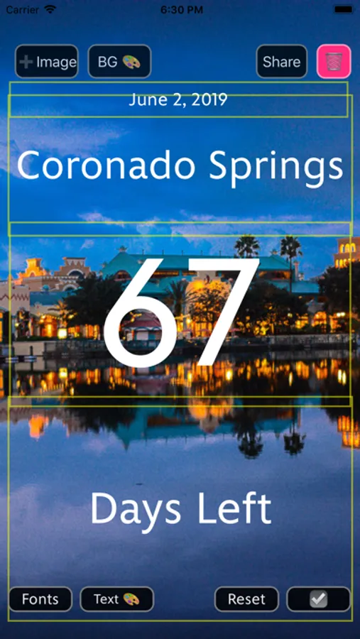 Create memorable images to countdown to special events. Set a date and Countdown With Me will count down the number of days on your image. Share with friends. More enhancements soon!