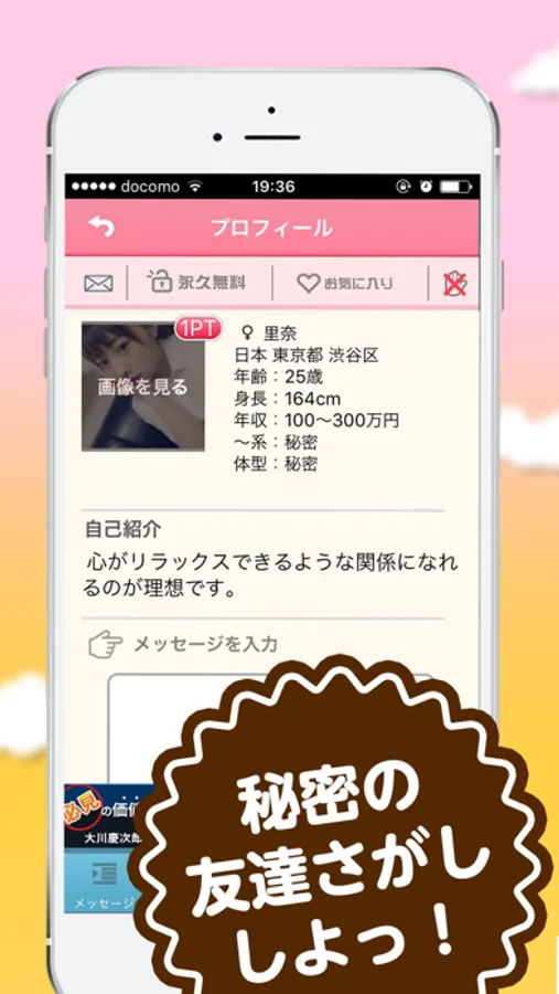 勿論、友達だけではなく・恋人探し、趣味友、飲み仲間、ただ話がしたいだけの暇つぶし相手を探すのもOK!