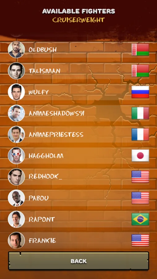 - You can call a friend to fight by entering his nickname, invite him from the contact list or choose any opponent in your weight category.