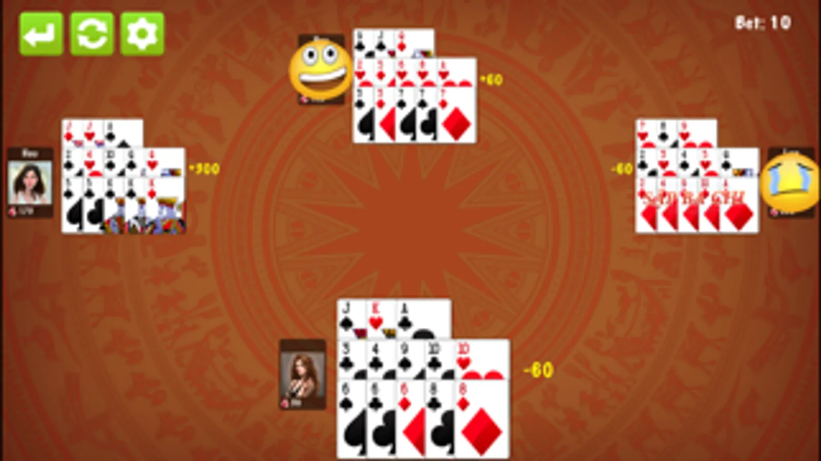 Mau Binh card game is the fascinating, amusing effective game for everyone. If you're in the mood to play but alone or missing friends, this game is the best fit for you. You just turn on the device, enter the game, the virtual opponents with perfect playing skills are awaiting you. We, the studio had success with the famous classic games such as Gold Miner, Lines 98, Shoot eggs guarantee the quality of this game.