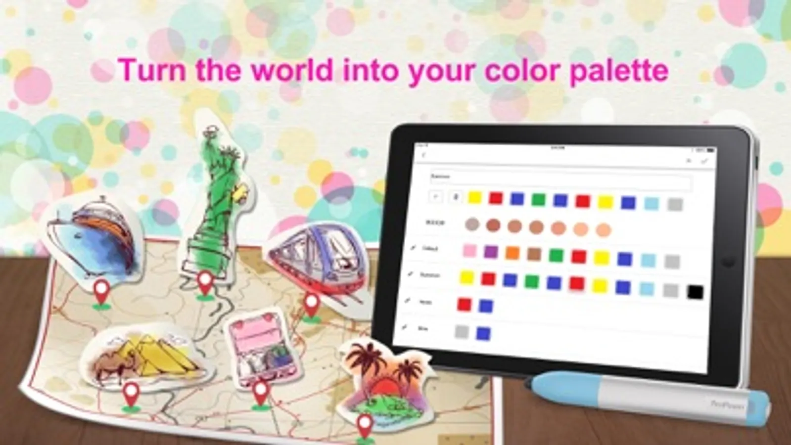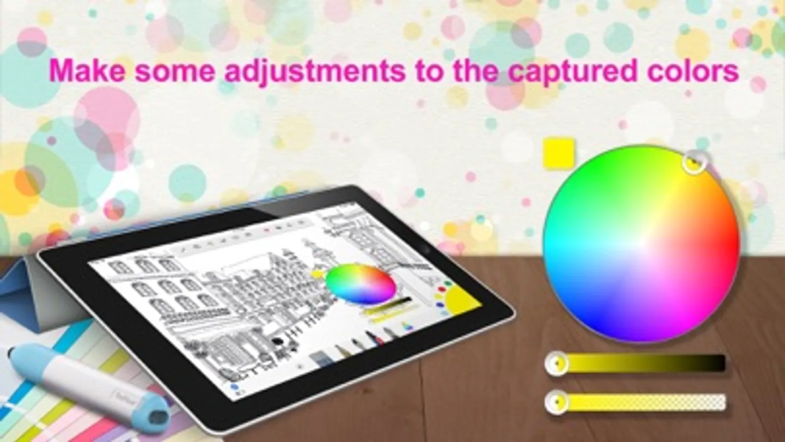 ColorPen Sketch can convert your photo into line drawing and let you recolor the drawing with different brush options. With PenPower ColorPen, You can freely extract colors from your surroundings, save the color codes and establish your palette in ColorPen Sketch. The App enables you to adjust the hue, saturation, lightness and transparency levels according to your preference. The color codes can be also exported as PNG format and utilized in Photoshop or other drawing software.