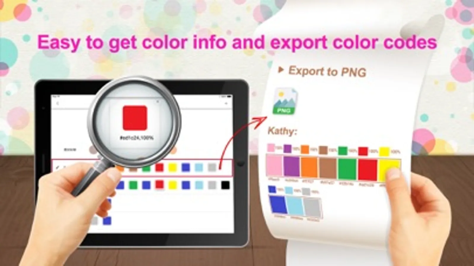 4. Save the captured colors and establish your own palette. Easy to export the color codes as PNG format and utilize the colors in Photoshop or other drawing software.