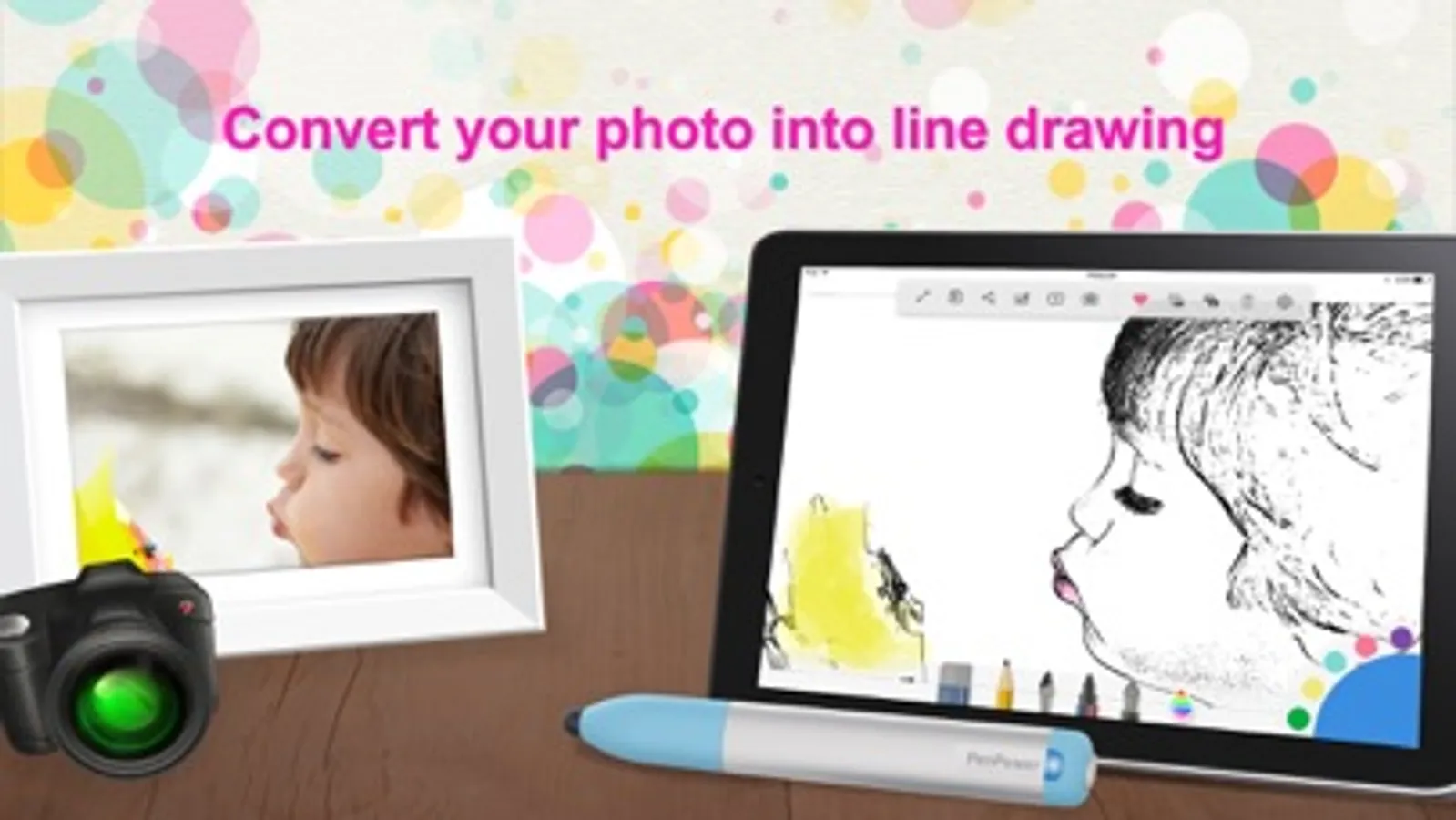 3. Convert your photo into line drawing and recolor it as you wish. The App also provides 20 built-in coloring pages.