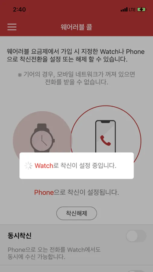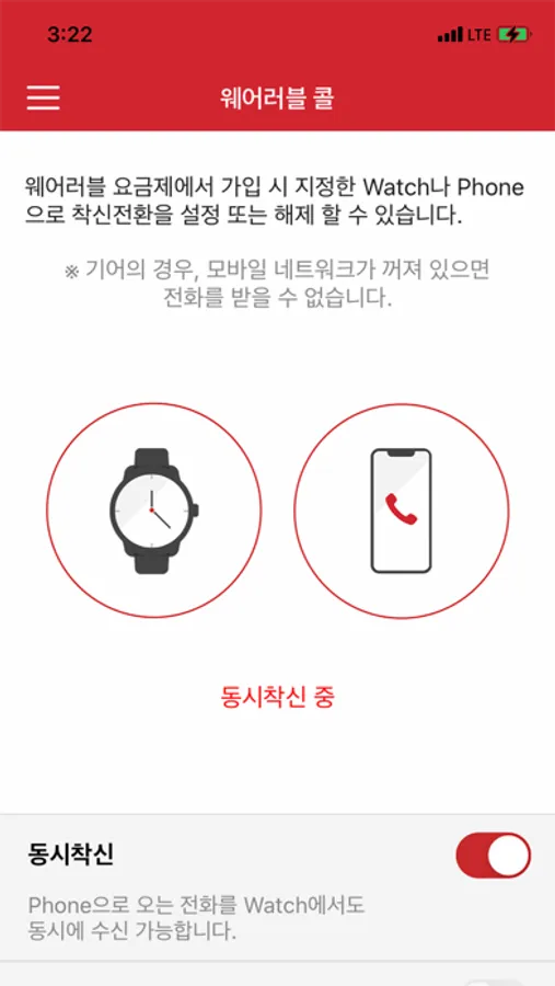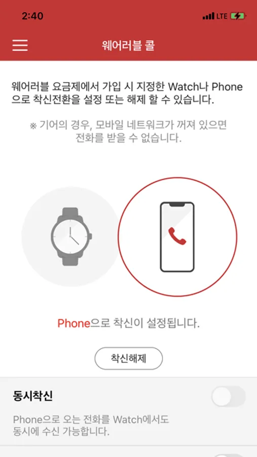폰과 동일 명의의 웨어러블 전용 요금제를 가입한 KT 고객 중 착신전환 그룹설정이 완료되고, 해당 서비스가 가입된 경우만 사용 가능합니다.