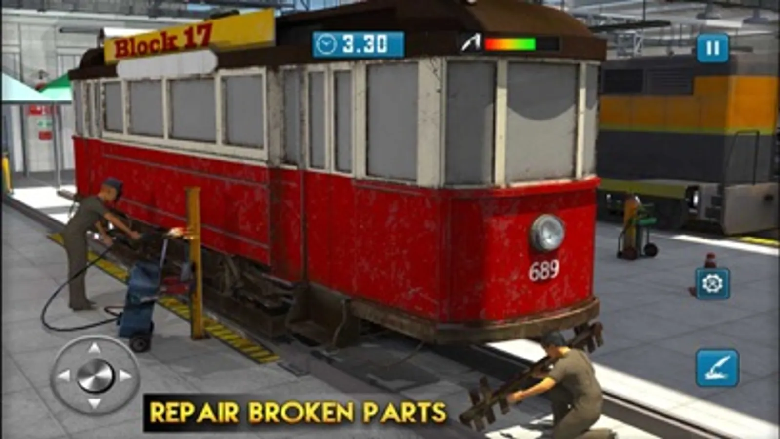 During train transporter tasks some railroad vehicles got rusty and damaged. Locomotive conductor felt some problem in metro express so he decided to repair and wash it at railway station. Buckle up your toolkit and upgrade mechanic workshop as transporter train garage to repair damaged vehicles. Put all acquired skills of car mechanics to get this public transport running on rail tracks. Take bullet train express into subway workshop & use upgraded tools to fix train engine and euro tram cabin. Learn to replace tyres with stepney, repair tram headlights or change train engine oil and do exciting paint job. Prove your distinctive experience of welding and repairing faulty machines of train engine. Use spray paint to color rusty parts of vehicle for a brand new look. Grand train mechanic simulator lets you customize trains of railway station better than any other service station games.