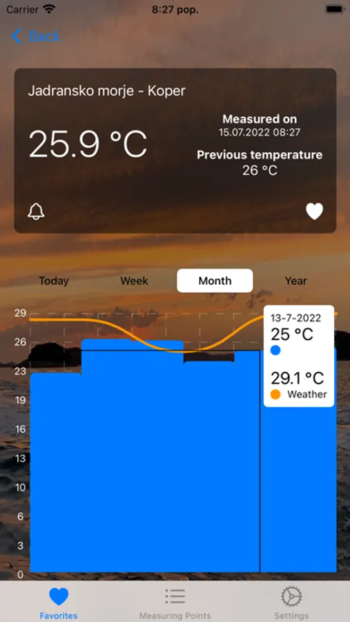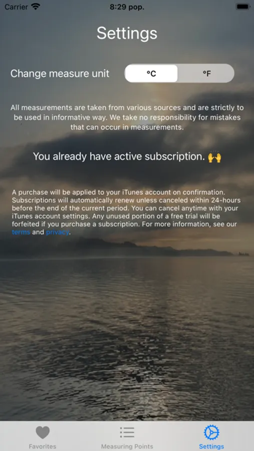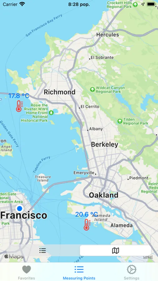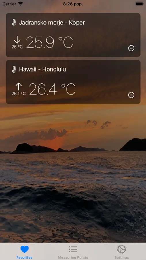 Be up-to-date with lakes and sea temperatures all over the world*. You can also see temperature history of measuring points and also subscribe to notifications when temperature of some measuring point reaches desired temperature. You can also choose which temperature unit to use when displaying temperatures.