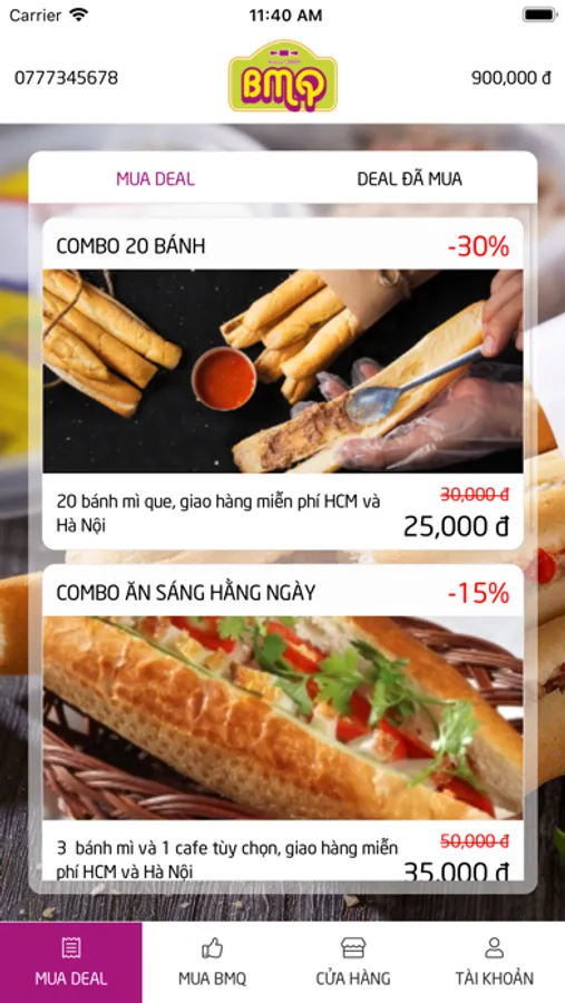 Đặt Bánh Mì Que - BMQ thông qua ứng dụng để nhận nhiều khuyến mãi, giảm giá hấp dẫn.