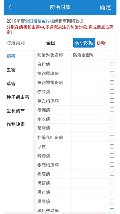 5. 各省作物健康诊断,指明作物种植中的各种病虫草害和缺素症