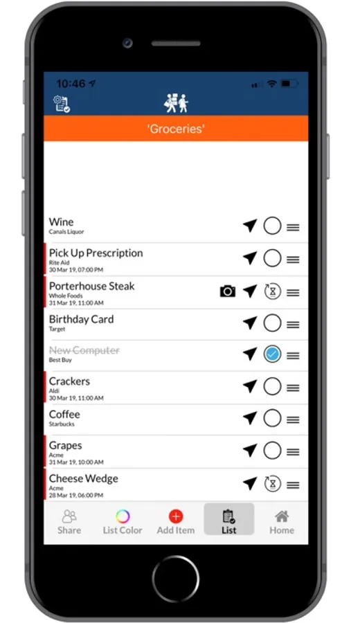 “IN PROGRESS” STATUS - Set an item to "In Progress" status to let the person you are sharing a list with know that you are at, or heading to, a location of an item, just in case they need something else! No need to send them a text or call! They will get a notification and then can just add to the list if they need something else!