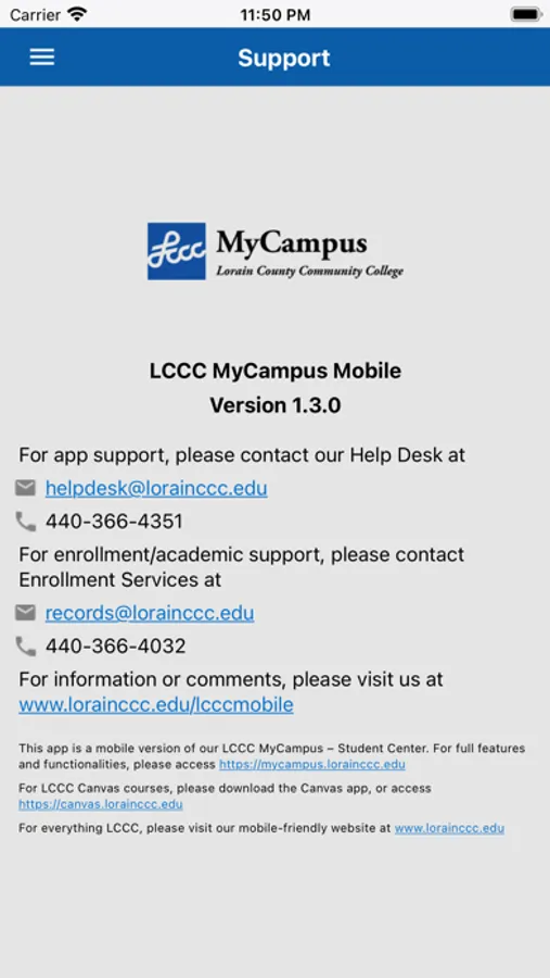 - For app support, please contact our Help Desk at helpdesk@lorainccc.edu, or call 440-366-4351