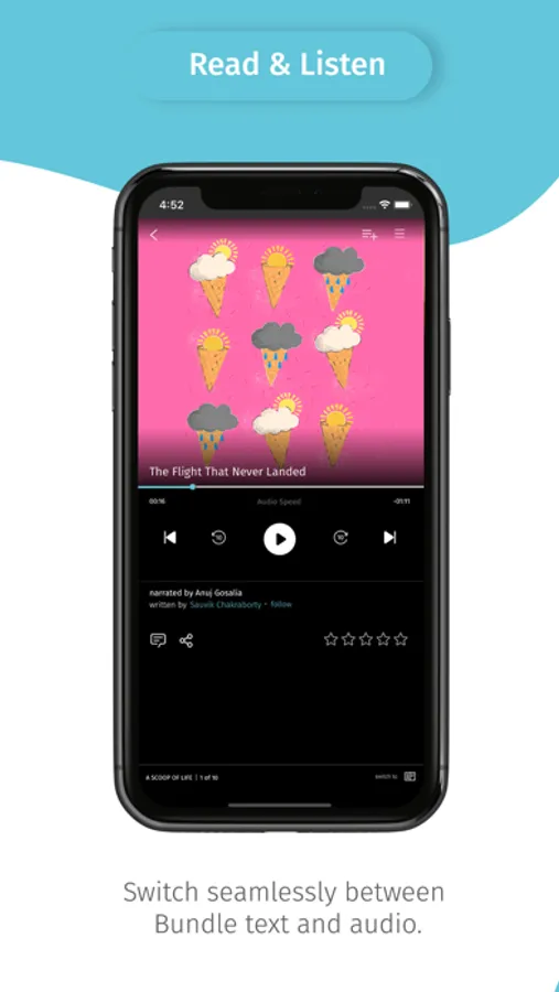 Tired reading? Tap on the icon and listen to the narration. Switch seamlessly between Bundle text and audio and discover a whole new way of experiencing stories.