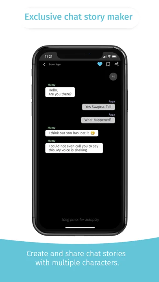 Create a chat story with different characters. Or read from a collection of chat stories by different writers. It’s almost as if you’re reading someone’s WhatsApp or Facebook chats. Tap to reveal chats that’ll keep you hooked for hours.