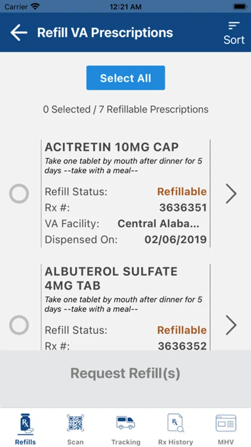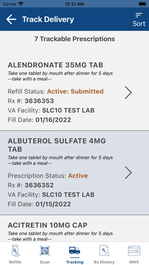 The Department of Veterans Affairs (VA) Rx Refill mobile application (app) allows you to request refills of your VA-issued prescriptions, track prescription delivery, view prescription history and access medication lists on My HealtheVet from the convenience of your mobile device. The app works in conjunction with the Rx Refill feature within My HealtheVet, and refill requests submitted through the app or the My HealtheVet website are trackable using the app’s Track Delivery feature.