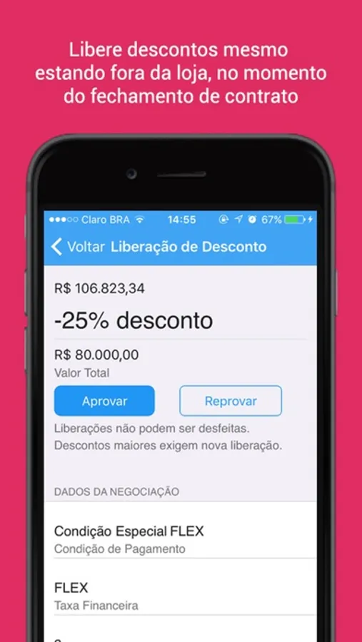 • Libere a aplicação de desconto sobre determinado valor de projeto
