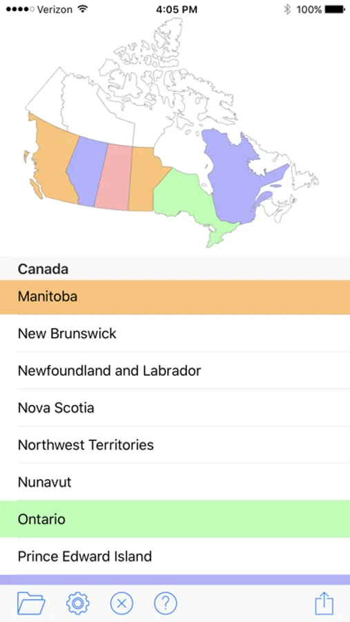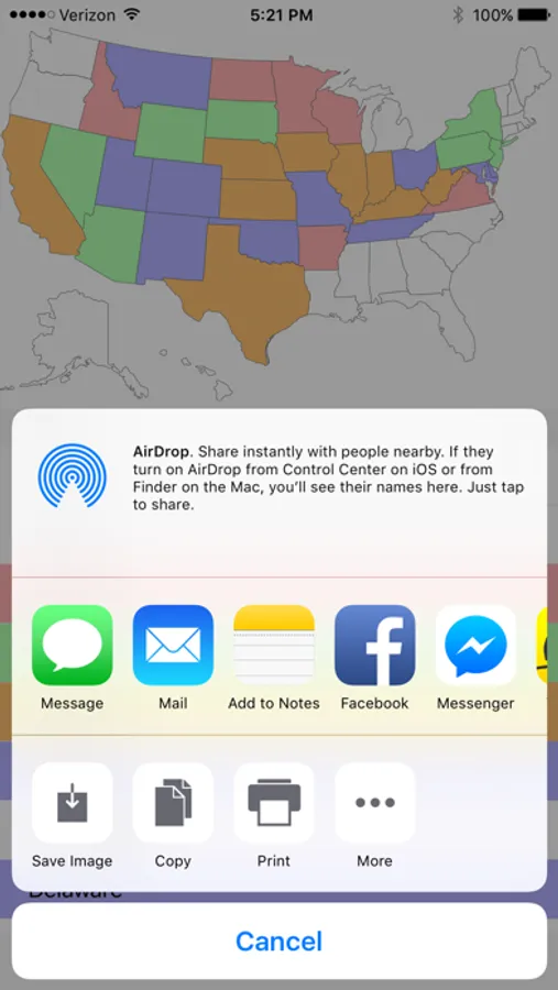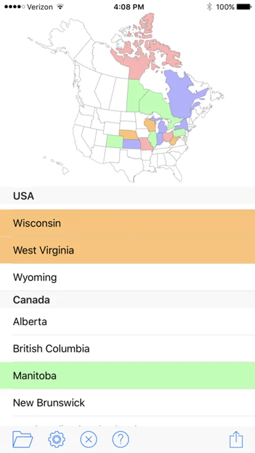 Create a map of your travels by selecting the US states and Canadian provinces you've visited. Color-code the states if you'd like. Then share your map to social media, send it in Messages or Mail, or generate a high-quality PNG or JPEG image at any size to use however you like.