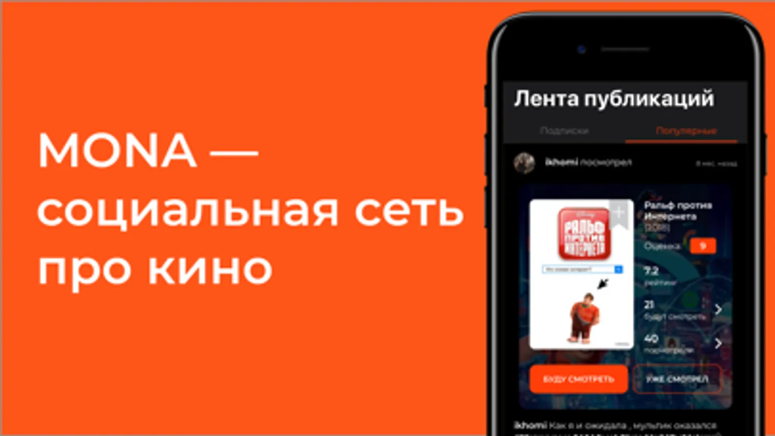Главная функция приложения — лента фильмов пользователей, на которых ты подписан. Листая ленту, ты можешь найти крутые фильмы для просмотра, почитать отзывы, добавлять фильмы в закладки или делиться ими со своими подписчиками.