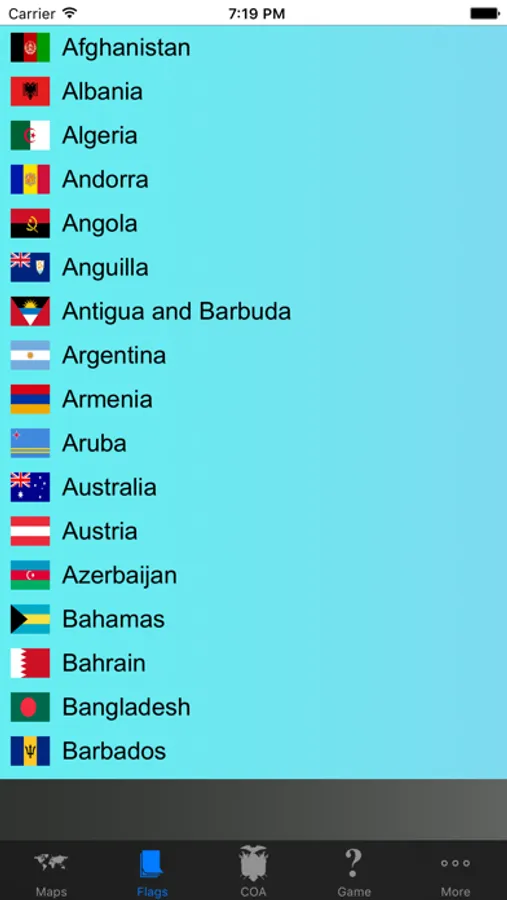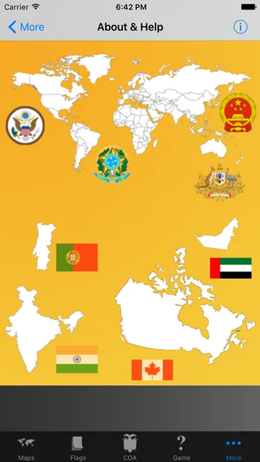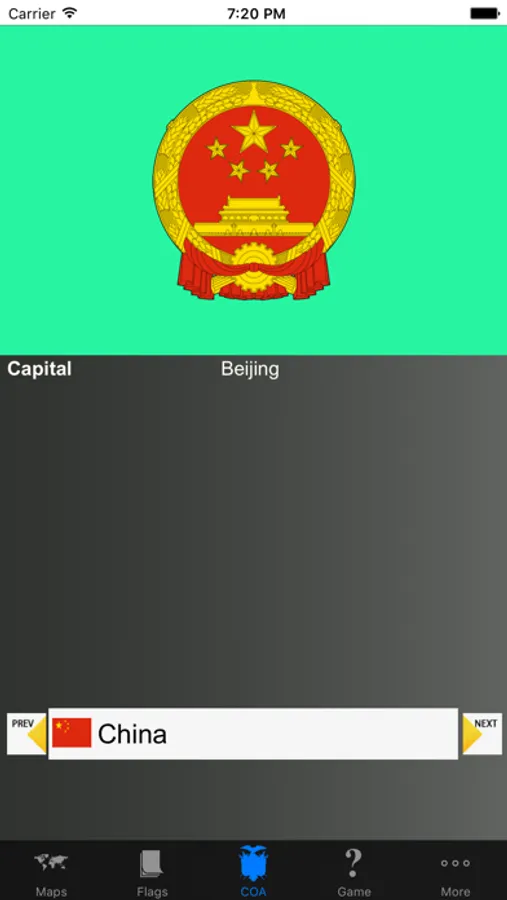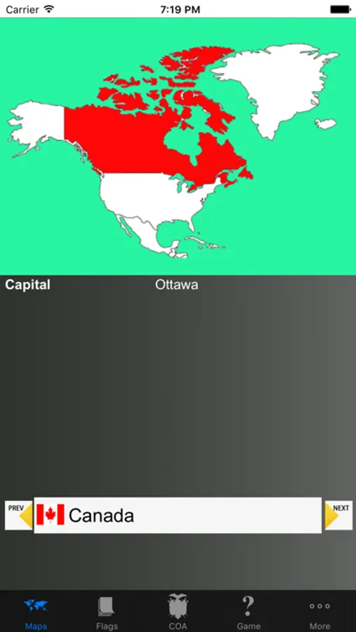 Geography application, Flags, Maps, Coat of Arms (COA) and Capitals of the Countries of the World. Information and Trivia