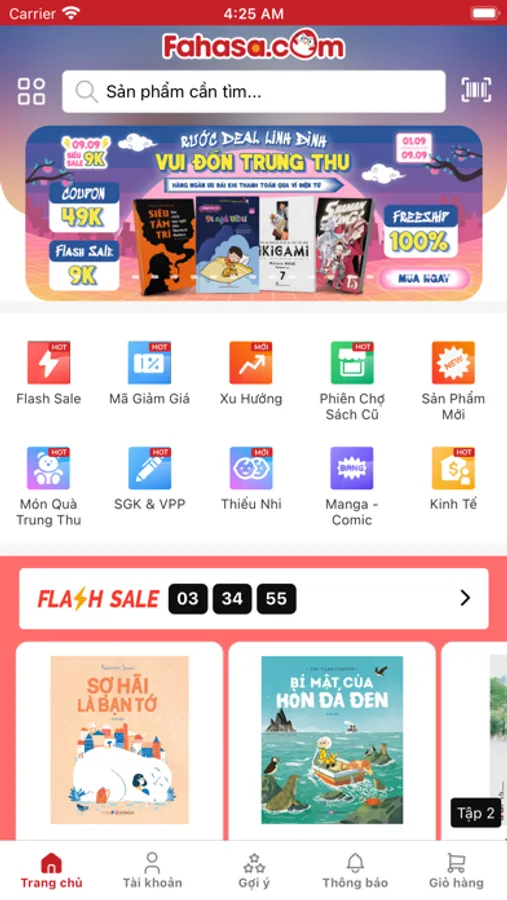 - Kho sách khổng lồ có hơn 200.000 sản phẩm tại FAHASA, được sắp xếp một cách thông minh. Bạn có thể tìm kiếm một cách nhanh nhất giúp bạn dễ dàng mua sắm trực tuyến mọi lúc mọi nơi hàng ngàn các sản phẩm: sách quốc văn, sách ngoại văn, văn phòng phẩm, dụng cụ học sinh...