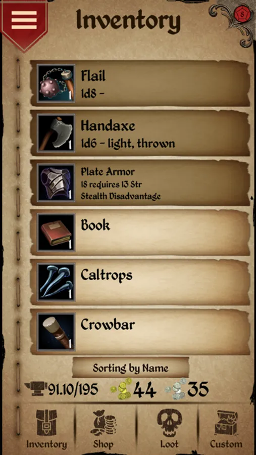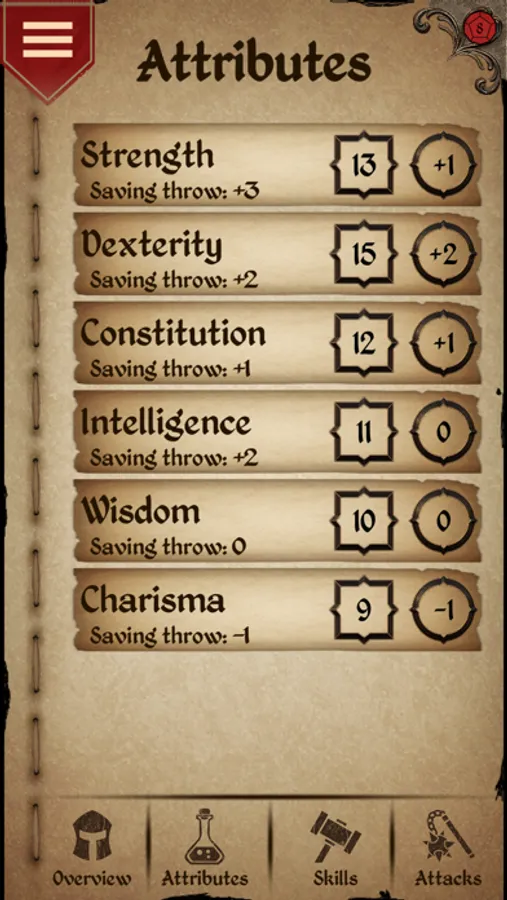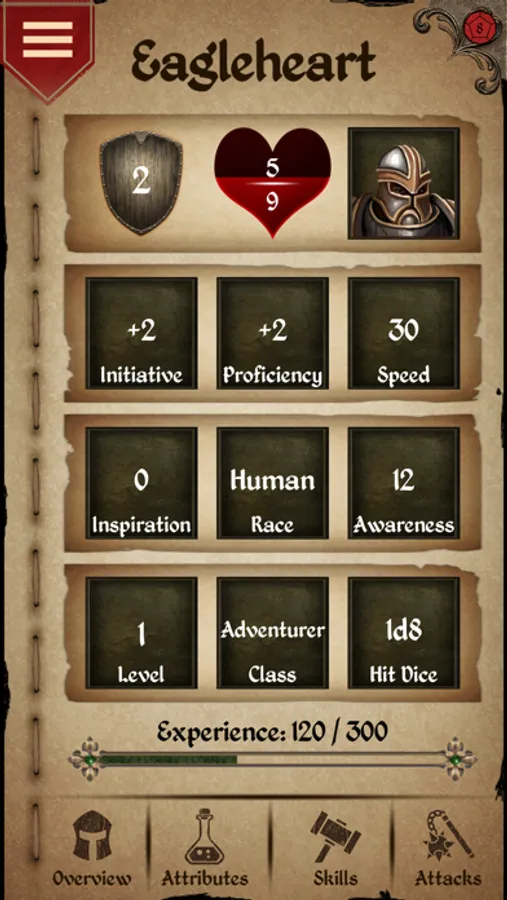 Intended for people familiar with tabletop RPG games, this app has several features to help you with tracking your character's data: