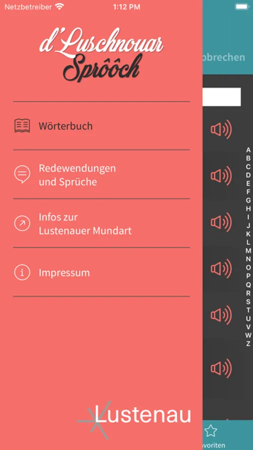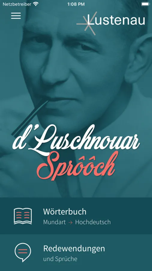 Die App „d'Luschnouar Sprôôch“ bietet Usern mehr als 7.400 Lustenauer Wörter und über 2.000 Redewendungen mit Übersetzung ins Hochdeutsche. Ein attraktives Feature der App ist die Audiofunktion zur Wiedergabe der Lustenauer Ausdrücke. Die Redewendungen sind in verschiedene Kategorien eingeteilt, für die es eine Filterfunktion gibt. Für Wörter sowie Redewendungen bietet der Zufallsgenerator lustige Abwechslung.