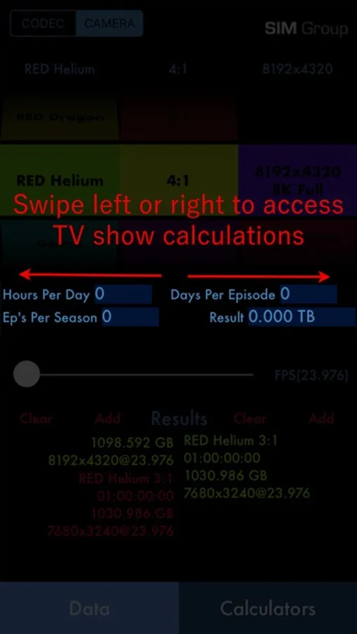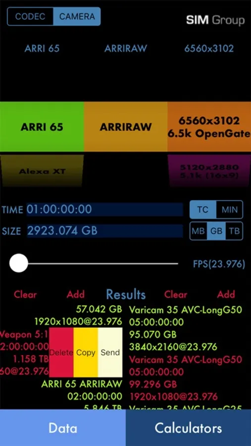 Sim is a camera rental and post production company constantly calculating data rates, timecode, internet transfer times. There are many tools on the market that offer this functionality, but none that work as an all in one solution. Most are not up to date with the latest cameras and flipping between various apps is a pain. Therefore we created the Sim DATA Calculator. Within this app you can: