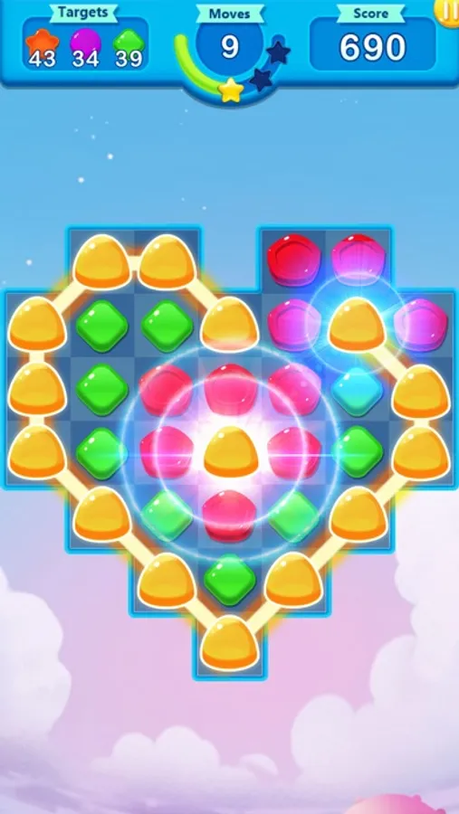 Here comes the new innovative candy match-3 game with line elimination. Connect 3 or more candies of the same color and level up!