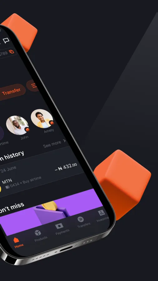 - 3-tap quick transactions for transfers, airtime and data purchases from springboard