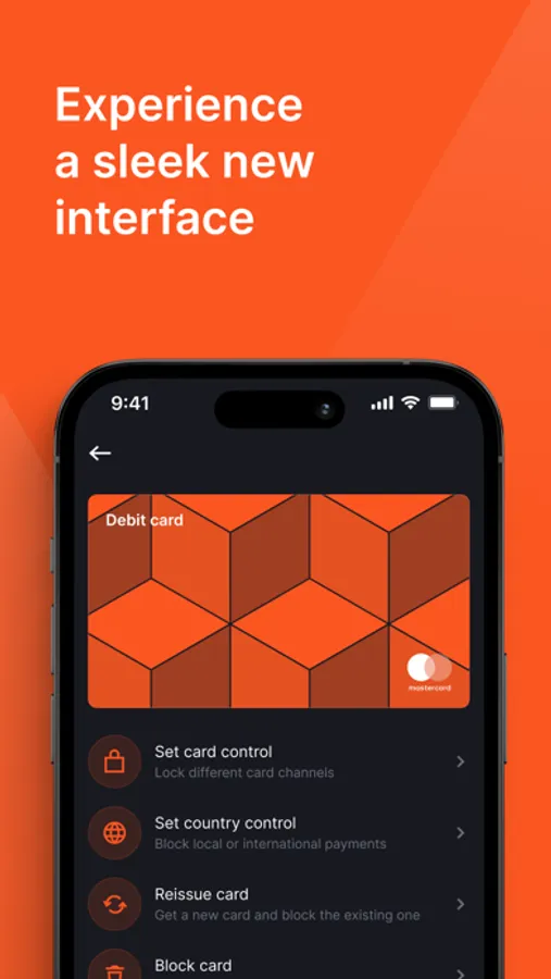 - Card control which allows you block your card payments by channel or by country