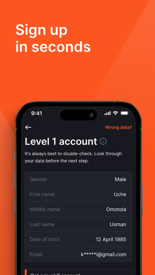 - Open an account and onboard easily with a Selfie to verify your identity!