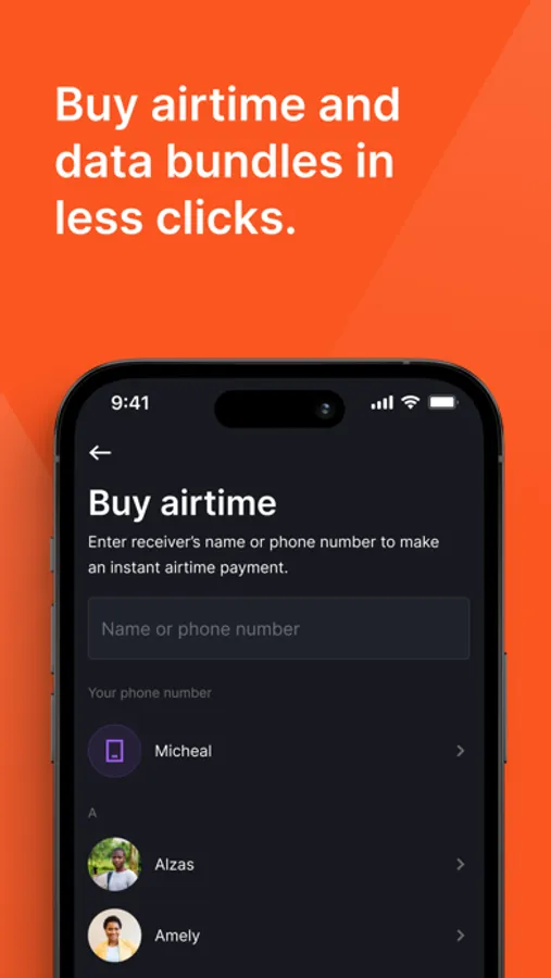 - Buy airtime and data for self, phone book contacts and others
