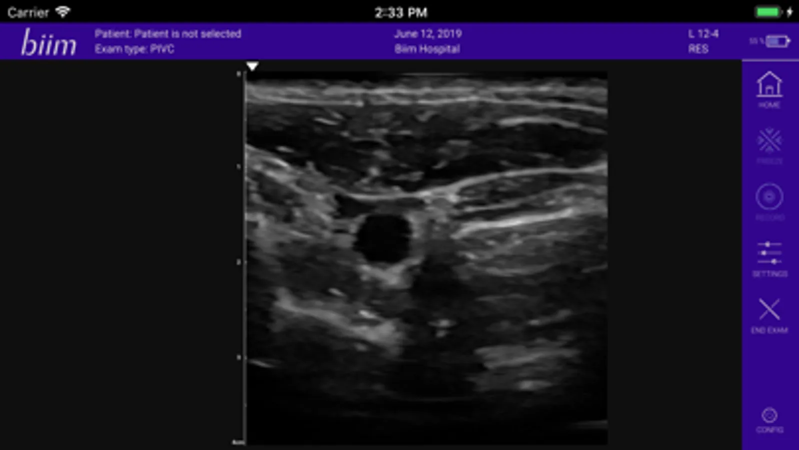 Simply download the app and pair the wireless Biim L12-4 linear probe via the secure point-to-point Wi-Fi connection, and you are ready to scan. The app allows users to create their own pre-sets, register patient information and easily save and send images and/or clips in standard formats. Cost and complexity are no longer hurdles for trained medical personnel looking to integrate ultrasound into their daily routine for improved patient care.