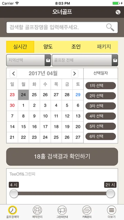 국내 골프장 약50여곳 실시간 예약 및 30여곳 브라인드 예약 지원 및