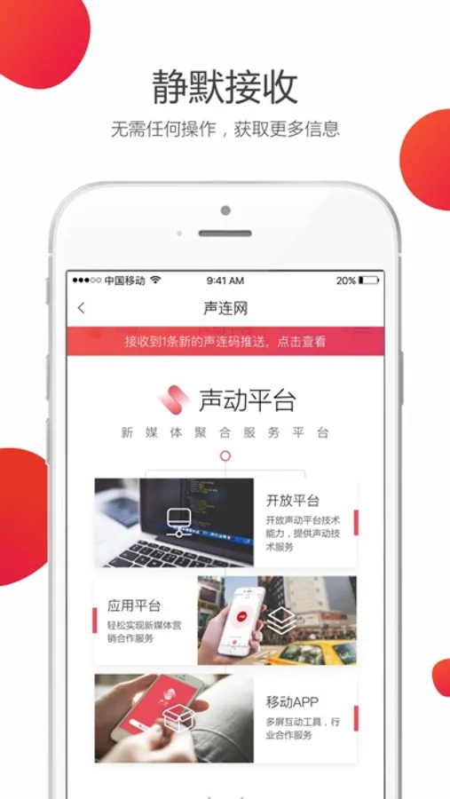 声动扫码以声连码为技术核心,带来全新的新媒体互动体验。